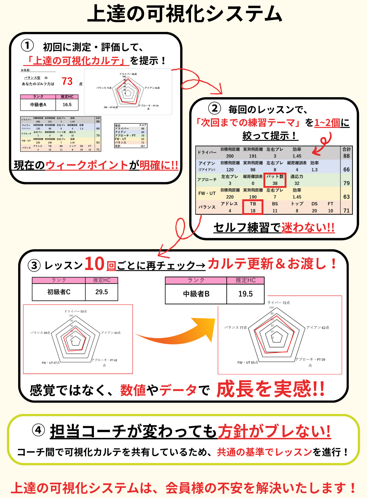 すべての会員様に、PGA基準のマンツーマン指導を。